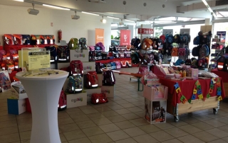 Seit Oktober 2013 führen wir Reisegepäck und Zubehör der Firma Travelite. Auf über 6 Metern erhalten Sie die verschiedensten Koffer aus Stoff oder Hartschale.